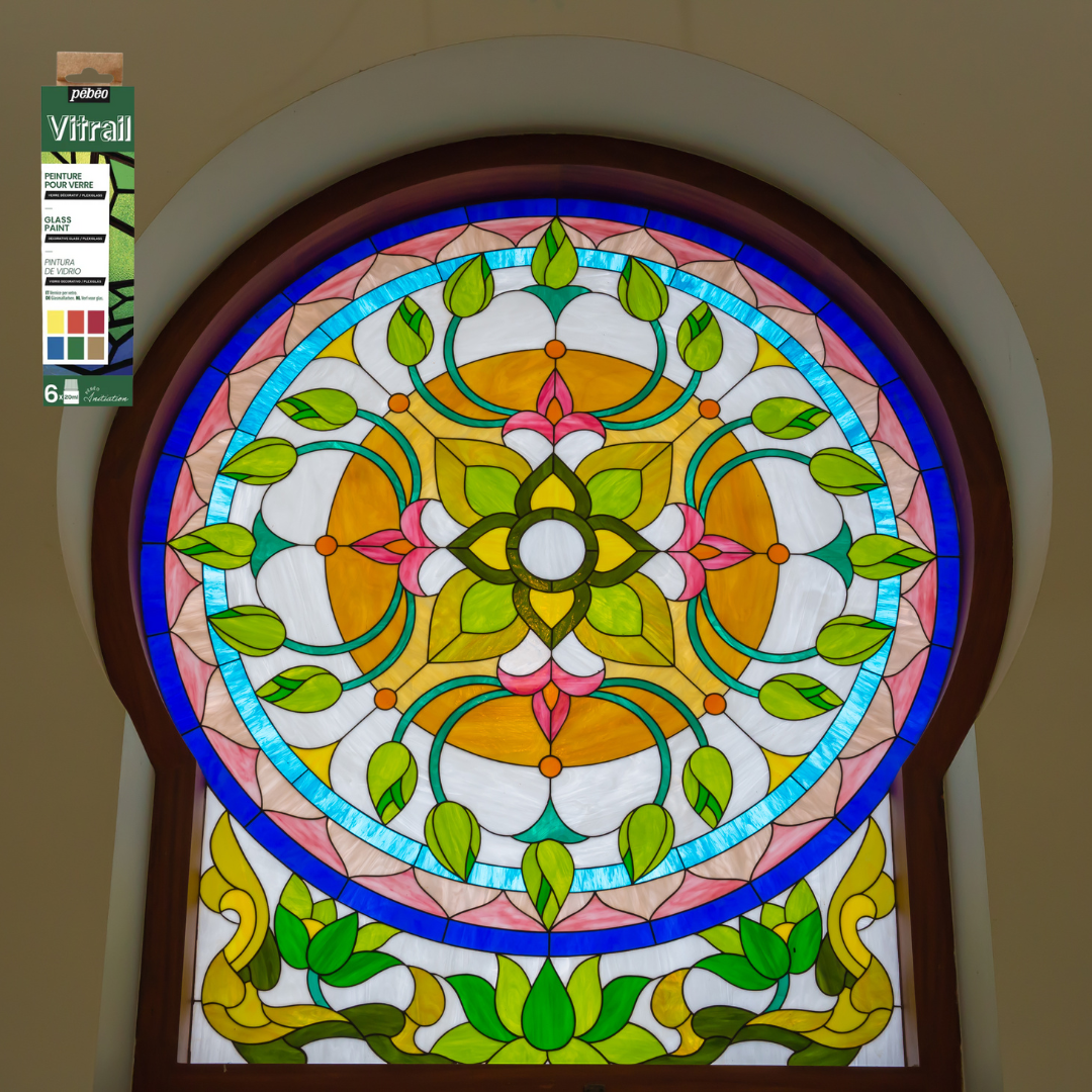 The Pebeo Vitrail Glass Paint Initiation Set includes 6 x 20 ml vibrant colors designed for creating stunning stained-glass effects on glass, metal, and other non-porous surfaces. These solvent-based paints offer exceptional transparency and brilliance, mimicking the look of traditional stained glass. Perfect for beginners and experienced artists alike, this set provides an easy and creative way to transform everyday items into colorful, luminous works of art.